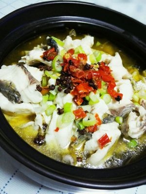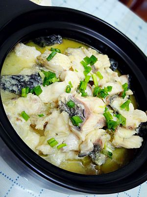 很好做的一道菜,把鱼洗净片好鱼片,加淀粉,盐,料酒,白酒腌好备用。锅内做水把黄豆牙焯熟放在碗里,再起锅放水把鱼头和其它鱼骨剁块放在开水煮透,捞出备用,锅内放水烧开,放火锅料2勺,调味,把鱼头先放等三分钟再放浆好的鱼片煮3分锅倒在盛黄豆牙的碗里,放火锅料