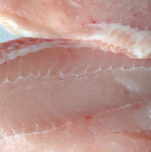 在鱼头和鱼身连接处,将鱼肉和鱼头用刀划开,但不要将鱼骨砍断,从鱼尾开始,顺着鱼骨用刀将鱼肉和鱼骨分开,直至鱼头,这就分开了一侧的鱼肉,另一次同样处理