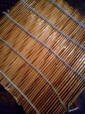 准备帘子,抹上一层橄榄油,没有的话用色拉油,但是一定要抹哦,不然的话饭粒全都沾在上面啦