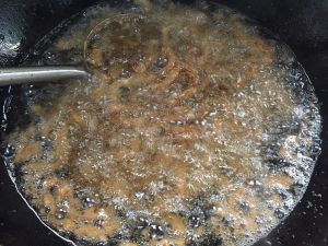 再放面条快炒,加少许盐及酱油,翻炒后出锅。