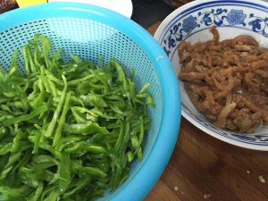 猪肉洗净,切死丝。用生粉生抽腌制10分钟。