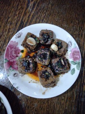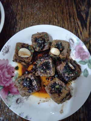 蒜,糖,老干妈,酱油翻炒几下,装盘