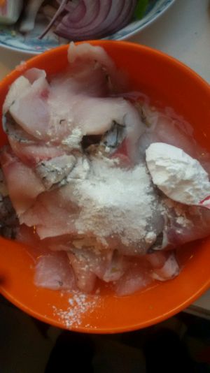 鱼肉片用盐,味素,鸡粉,蛋清,淀粉腌制一下待用