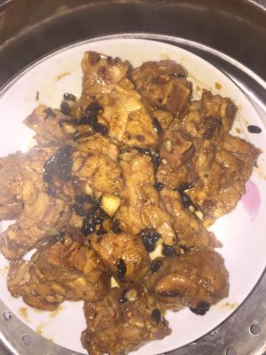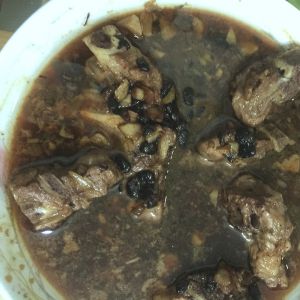 盆内放:酸梅酱(没有可不放)盐 味精 糖 白胡椒粉拌匀。放入排骨拌匀,最后加入蒜油 豆豉酱拌匀即可