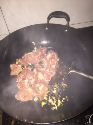 备料都纠伴好后放排骨下锅炒翻(稍微炒翻就好,当是㧃拌匀材料)