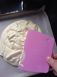 很多人问为什么你蛋糕卷表面那么平整,这就是秘密武器哈,刮的时候不要用力,贴住表面,自然的力度就可以