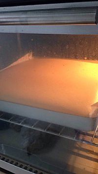 连通油纸一起抽出放烤架上,撕开四边油纸等待冷却