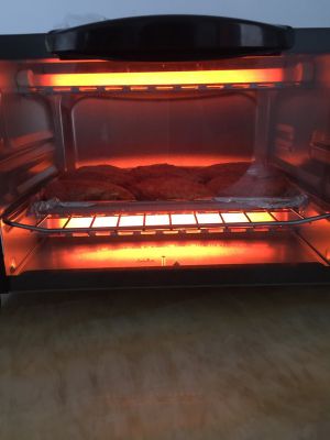 烤箱预热一下,中下火220度烤15分钟。拿出来刷蜂蜜(切记一定要涂的薄,并不是刷的多它就甜,刷多会粘锡纸,会糊)。再烤箱预热一下,中下火220度烤5分钟,就OK。