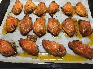 烤箱放好锡纸 把腌好的翅放好 涂上一层腌酱 上下火预热180烤8分钟 然后翻过面刷腌酱在烤5分钟
