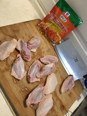 鸡翅洗净,在鸡肉上划几刀会更入味,把腌料和水调好,倒入鸡翅,放冰箱腌制8小时