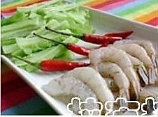 然后利用焯荷兰豆的水焯一下虾,大火煮20秒左右捞出。
