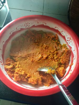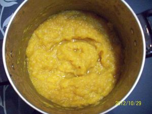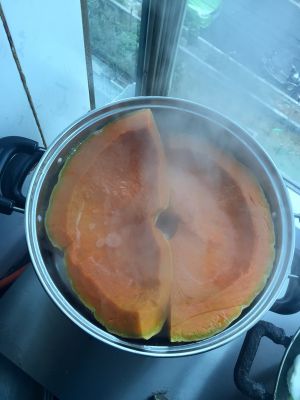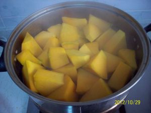 南瓜煮熟,弄烂。