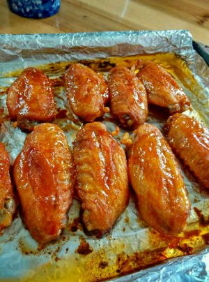☞烤箱200℃,把鸡翅码在烤盘上两面刷上蜂蜜水放入烤15分钟,拿出来翻面刷上蜂蜜水烤15分钟,翻面刷蜂蜜水烤10分钟,再翻面刷蜂蜜水烤10分钟(时间是2个15分钟、2个10分钟,每次翻面必须刷蜂蜜水) ☞微波炉中高火,步骤一样(时间是2个10分钟、2个7分钟) ☞各家的烤箱和微波炉都不一样,我给的时间可以参考,还得依据自家的电器调整时间
