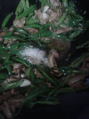 最后放入青红辣椒,加点生抽和鸡精,翻炒一下下即可