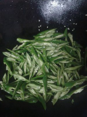 差不多时放入切成小块的青椒 ,炒熟装盘