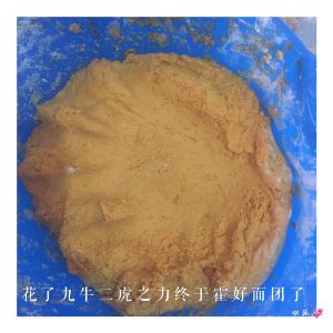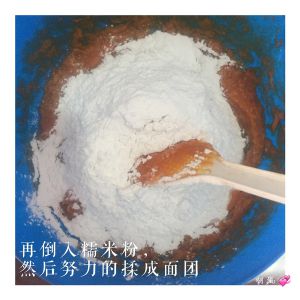 把水沥干后加入糯米粉混入南瓜泥中搅拌均匀