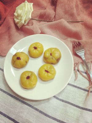 南瓜一小块,切片蒸熟 耙了软了就可以了,弄起来捣碎加一点糖!!我没加看自己喜好 先放面粉 在加南瓜泥 这个很重要哈!自己酝酿加!加起来可以柔成坨就行