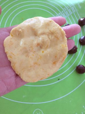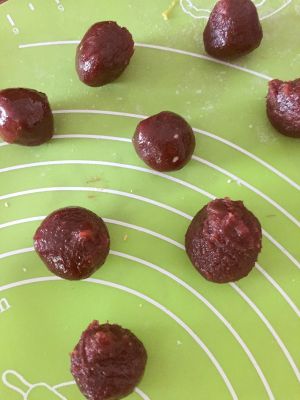 南瓜蒸熟打成泥加糯米粉和成团,稍硬点!