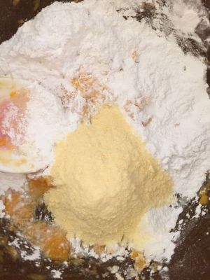 加糖也可不加糖,我怕腻人没给糖,加糯米粉和成面团,面粉一边加一边揉面团,不粘手就差不多了