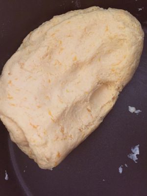 南瓜切片蒸熟倒在干净的盆,压碎加白糖再慢慢加入糯米粉,一起像和面一样。