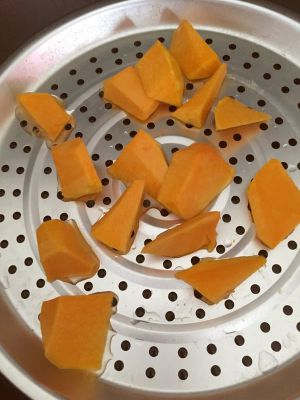 南瓜去皮微波炉叮七分钟,捣成南瓜泥备用