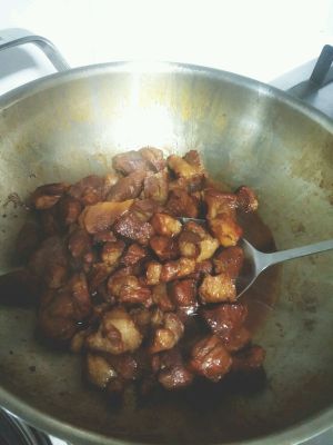 倒入鹌鹑蛋,加入糖,继续小火焖
