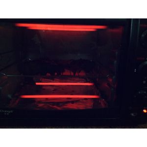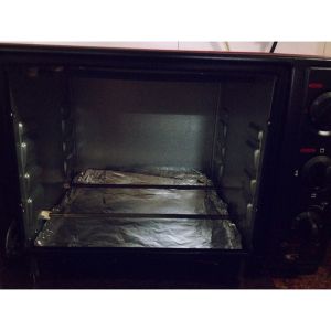 我用的是烤网所以要在烤箱底下铺上一层锡纸,不然到时候洗烤箱你会哭哈。