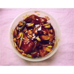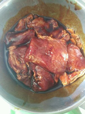 酱汁:红烧酱油两勺、生抽两勺、蚝油一勺、甜味烧烤酱两勺,蜂蜜两勺,白糖半勺,姜片