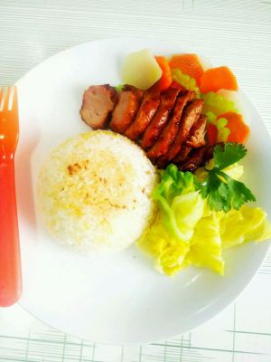 把所有材料放进入,加入葱姜蒜头,蚝油,生抽,海天叉烧酱和少许蜂蜜,一点盐,(喜欢甜味的可以不用加盐哦)叉烧酱放多些,我都加了大半瓶了^_^