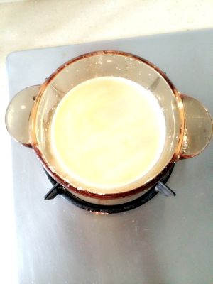 过滤好的玉米水上锅熬,需不停的搅拌,以免糊锅。