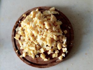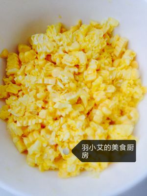 用厨房里的削丝的工具 把玉米直接削成碎,或者用刀切碎。