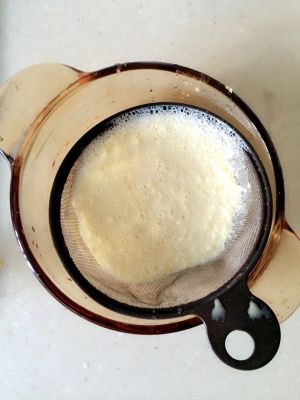 用细网筛子把打好的玉米糊过滤,最后的渣子都是玉米皮,可以用来做饼。