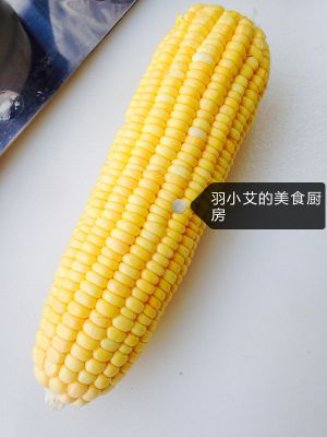 选用新鲜玉米一根,小艾喜欢吃水果玉米,所以就买的水果玉米,市场上还有粘玉米等其他品种,根据个人口味而定。