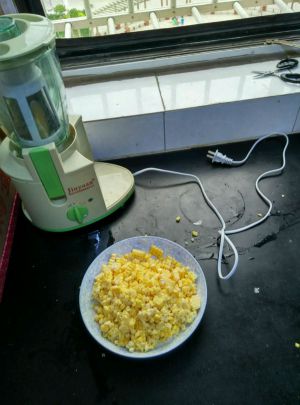 玉米粒加少许水用搅拌机打成糊糊状,水的多少决定玉米羹是否能成果冻状。