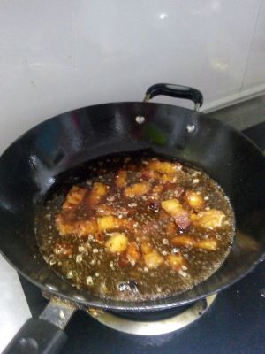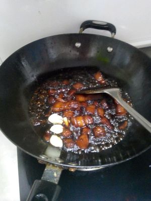 之后,加料酒,老抽等佐料,翻炒后加水煮