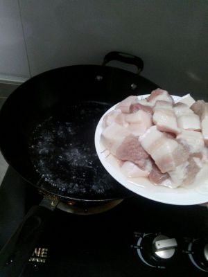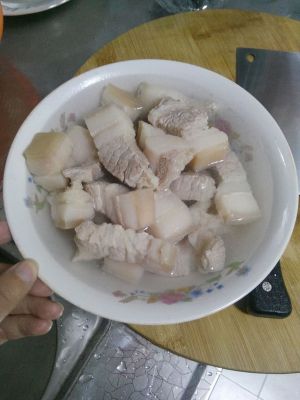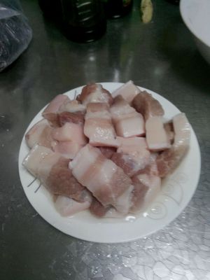 五花肉洗净,锅里加水把肉放进去焯一下,焯好后沥干水份