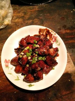 第二:热锅放油,放入生姜茴香翻炒一会,将五花肉倒入油锅,要一直翻炒(一定要不停翻炒五花肉防止肉粘锅)3-5分钟后放生抽再次翻炒一会,使生抽完全均匀包裹住肉。再将刚才肉汤倒入肉锅里放(冰糖)盖锅大火烧5-10分钟。中间可以开盖几次翻炒下肉,使冰糖更快的被肉吸收装盘上桌。你没看错就是这么简单就是这么任性。看好你哦。