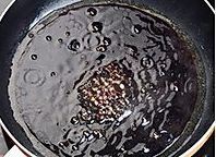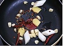 锅烧热放油,放入葱姜蒜花椒大料小茴香干辣椒煸炒出香味