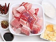焯水后,切1-2厘米见方的块,放入炒锅中翻炒(小火)将过多脂肪逼出,沥油,有点焦黄即可。