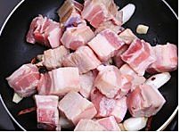 将切好的五花肉放入锅内煸炒直至肉变色,煸出香味