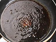 放入葱姜蒜,翻炒出香味,放入老抽和料酒