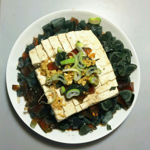皮蛋,豆腐,切好摆盘。摆的好看一点,看起来也有食欲。