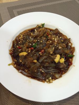 把调好的酱料和海蜇皮混合一起搅拌均匀,一份酸爽可口的海蛰皮就做好咯