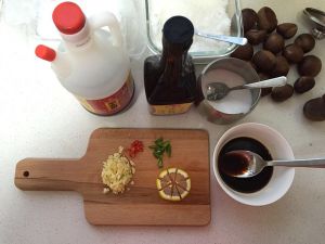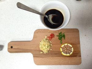 将切好的蒜和辣椒放在碗里,加上白醋,生抽,香油,白糖搅拌均匀,调好