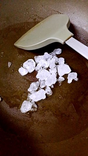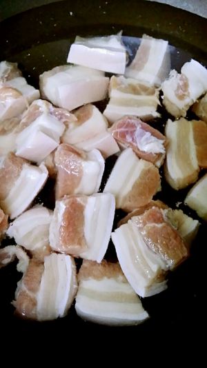 挑选几块比较肥的五花肉放入锅中煸炒,记住不需要放油,煸出油后将其盛出备用。