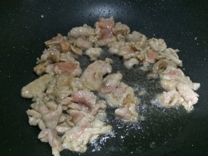 热锅,加油,油五成热时加入肉片翻炒至肉片变色,加入葱姜炒出香味。