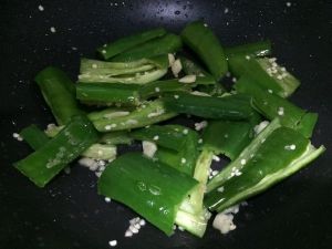 加入少量水,等锅开,有红薯粉勾芡淋入菜中,就OK了