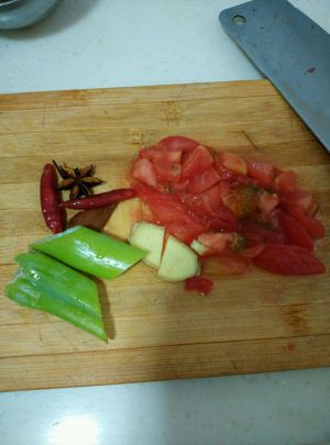 西红柿,姜,大料,桂皮,干辣椒,葱备用