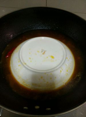 拿一个盘子盖在上面,再把锅盖盖上,小火慢炖一个小时