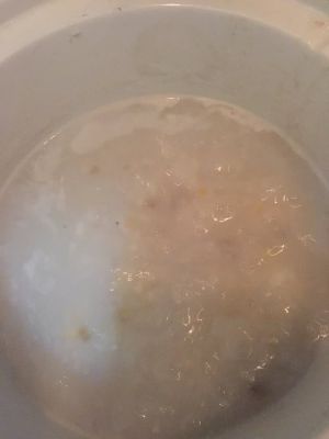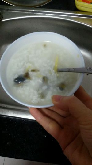 3分钟的皮蛋粥(速食版) 这周末肥鼠出门早,借鉴了米桶版,超级简单。电饭锅前一晚定时煮粥,早上吃时碗底放四分之一皮蛋少许海盐滚粥冲开,放一会味道就融合了。 咸肉其实腌好了,但我隔夜定时,索性没加,配葱油饼也不是很寡淡的感觉。可惜肥鼠还是赖床啃一口就跑了,早上时光真心宝贵啊,去补回笼觉了。